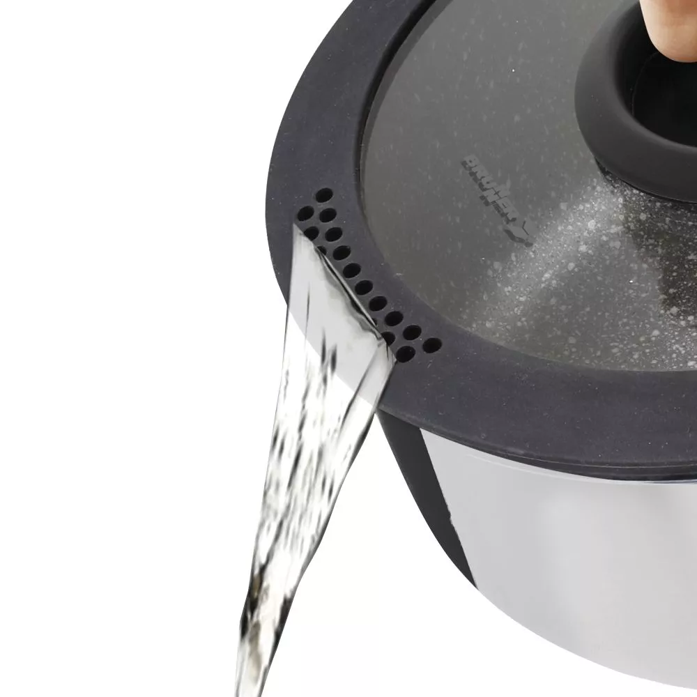 - hitzebeständiger Glasdeckel mit Abgussfunktion