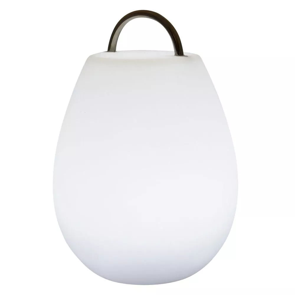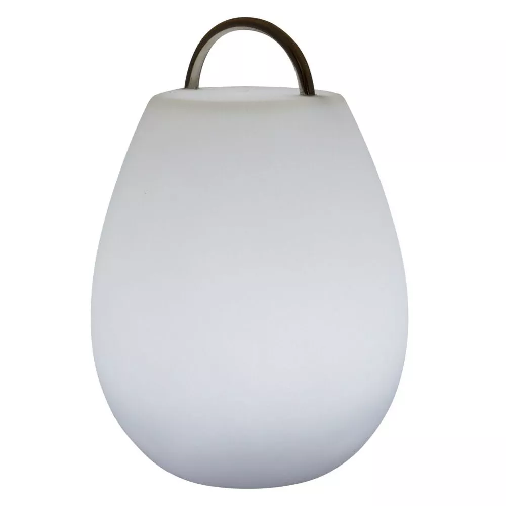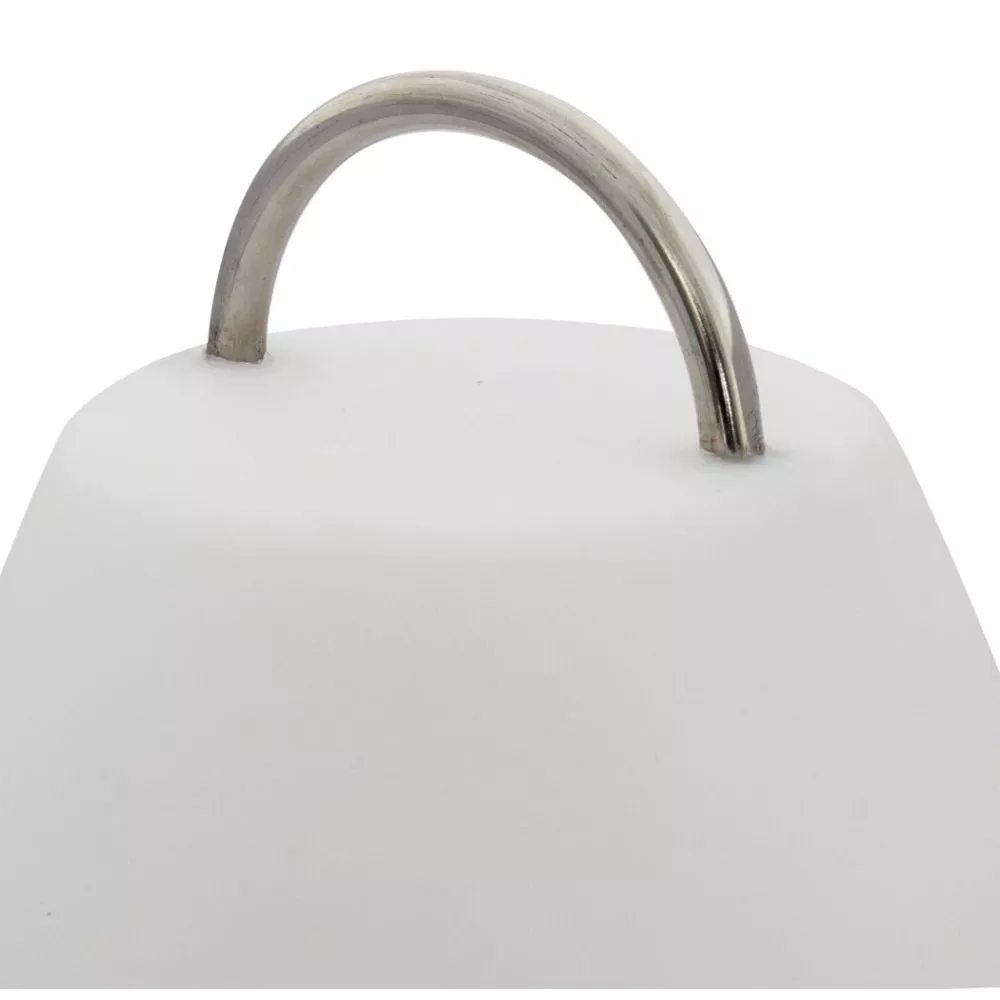 Ausgestattet mit einem markant verchromten Tragegriff, ist die wetterfeste Lampe icht nur für den Tisch geeignet und kann überall eingesetzt werden. Selbst bei plötzlichem Regen bleibt die Leuchte aus optimal wasserabweisendem Material (IP54) problemlos und sicher draussen stehen.