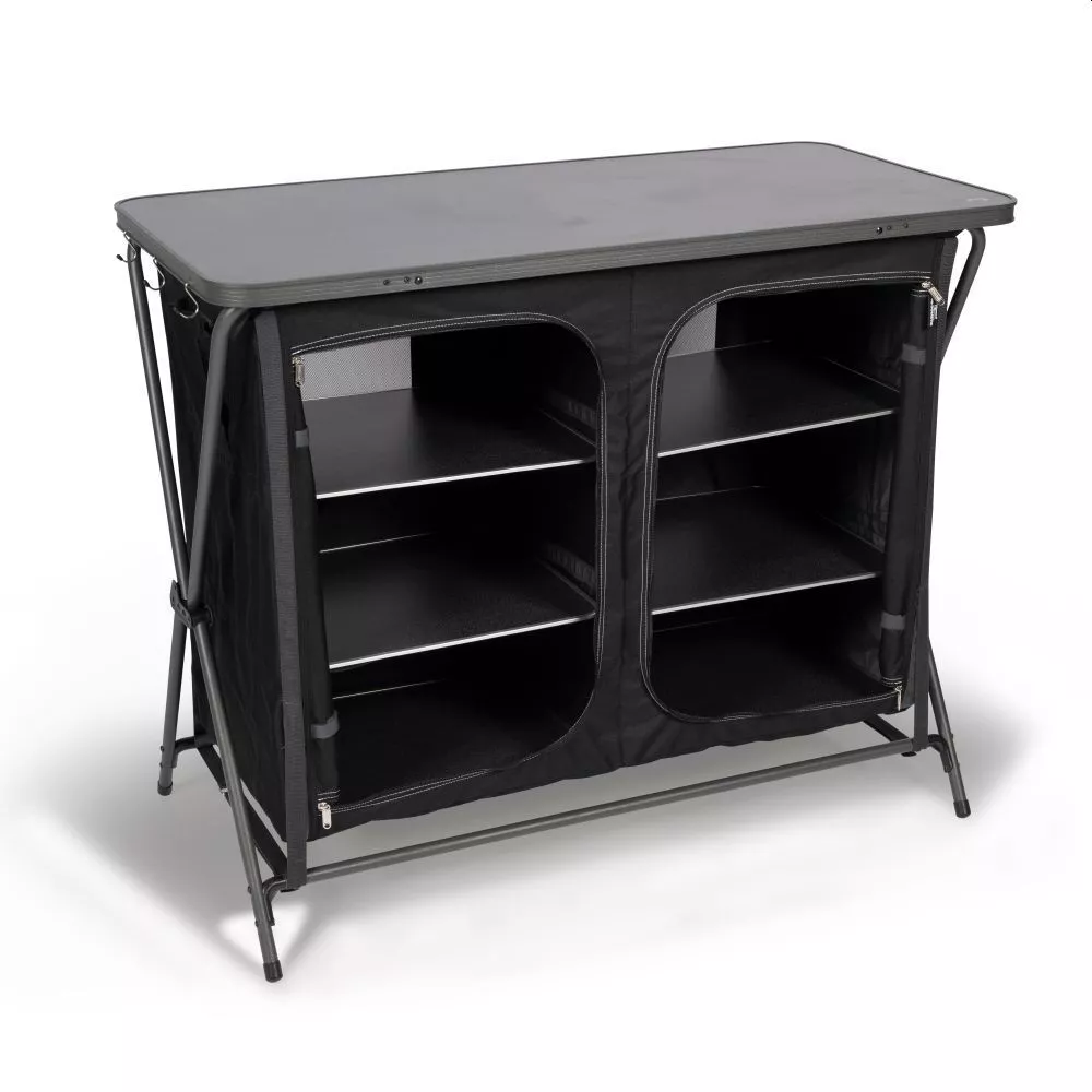 Der grosse Zeltschrank Kampa Zara mit sechs innenliegenden Ablagefächern. Mit XPRESS-Schnellaufbausystem, um keine Zeit mit dem Möbelaufbau zu verschwenden. Mit viel Platz, um sämtliche Campingutensilien unterzubringen.