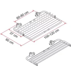 Der Wäschetrockner Fiamma Easy Dry ist ein Wäscheständer, der sich an den Auflagebügel der meisten Fahrradträger mit 35 mm Rohr anbringen lässt. Er wird ohne Bohren an die Carry-Bikes mit einem Achsenabstand von 60 bis 80 cm angebracht. Die Endstücke haken sich an den Rohren des Auflagebügels ein und der Ständer lässt sich durch Einrasten ohne Mühe montieren. Das Reisen ist dank der klappbaren, innovativen Struktur im geschlossenen Zustand möglich. Der Fiamma Easy Dry wird mit Plastikseilen für die aufzuhängenden Textilien und mit Feststellschraube zum Fixieren ausgeliefert. Die Breite ist von 100 auf 120 cm verstellbar.