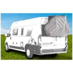 Die hochwertige Hindermann Fahrradschutzhülle CITY wird von der Rückfront zum Fahrzeug hin aufgezogen, um somit auch die Unterseite des Fahrradträgers vor Verschmutzungen zu schützen. Anwendungsbereich: Standard Heckträger rechts am Kastenwagen. Für Reisemobile mit Fahrradträgern gilt eine empfohlene Höchstgeschwindigkeit von 90 km/h.