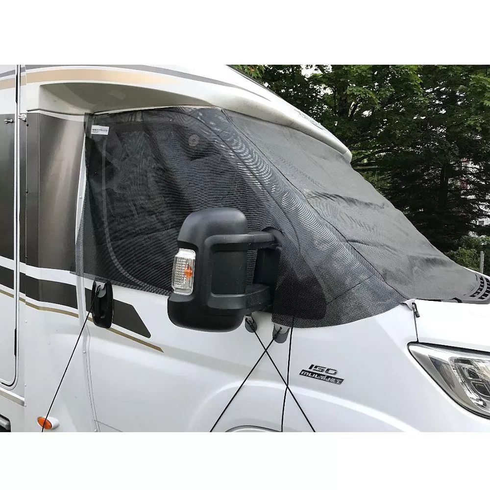Die Hindermann Sonnenschutzmatte Screen für den Kastenwagen Fiat Ducato schützt vor Sonne und vor ungewollten Blicken. Vom Fahrzeuginneren sind Blicke nach draussen problemlos möglich. Der Sonnenschutz spendet Schatten und ist einfach zu montieren. In beiden Türbereichen befinden sich Innentaschen, die einfach über die Türkanten eingehängt werden. Abspannmöglichkeiten zu den Aussenspiegeln bzw. den Radkästen sind vorhanden. Die Gummispanner gehören zum Lieferumfang.