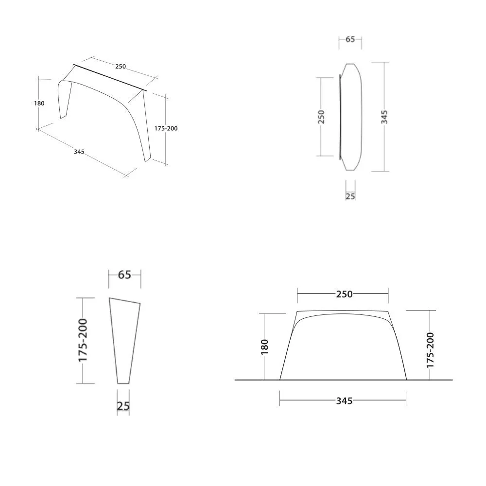 Grösse: 345 x 65/25 x 175 – 200 cm (BxTxH)