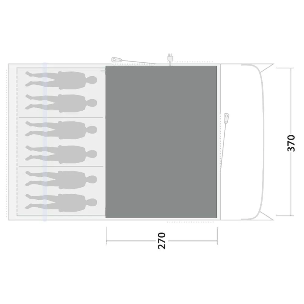 Dieser Zeltteppich ist passgenau auf den Wohnbereich vom Campingzelt Outwell Denver 6 zugeschnitten. Er beschert sofortige Wärme und warme Füsse, garantiert Wohnkomfort und mehr Behaglichkeit bei Tag und Nacht. Zieh die Schuhe aus, spiel mit den Kindern auf dem Boden und steige an kalten Morgen unbekümmert aus dem Bett auf einen angenehm warmen Boden.
