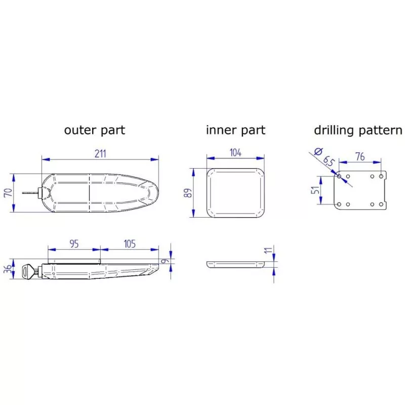 – Montage durch die Fahrzeugwand mit 4 Schrauben, Gegenplatte und Abdeckung