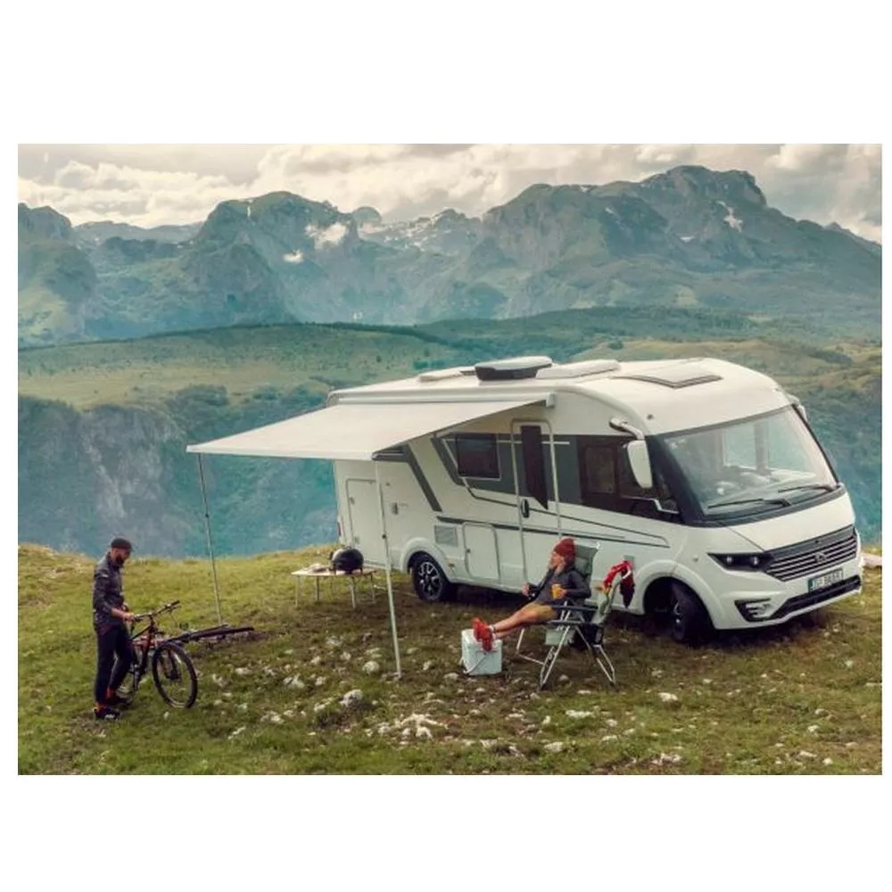 Mit einer Länge von 2,6 m bis 6,0 m ist die Dometic PerfectWall PW 1500 die richtige Markise für viele Fahrzeuge. Das hochwertige, aus einem Stück gefertigte Markisentuch kommt ganz ohne Schweissnähte aus. Dank der sich automatisch anpassenden Frontleiste lässt sich die Markise leicht und geräuschlos ein- und ausfahren. Die Stützbeine mit patentiertem Easy Lock Flipper System sorgen dafür, dass die Markise jederzeit sicher in Position bleibt. Diese Premium-Markise hat langlebige Endkappen aus Aluminium und kann manuell oder mit Motor betrieben werden.