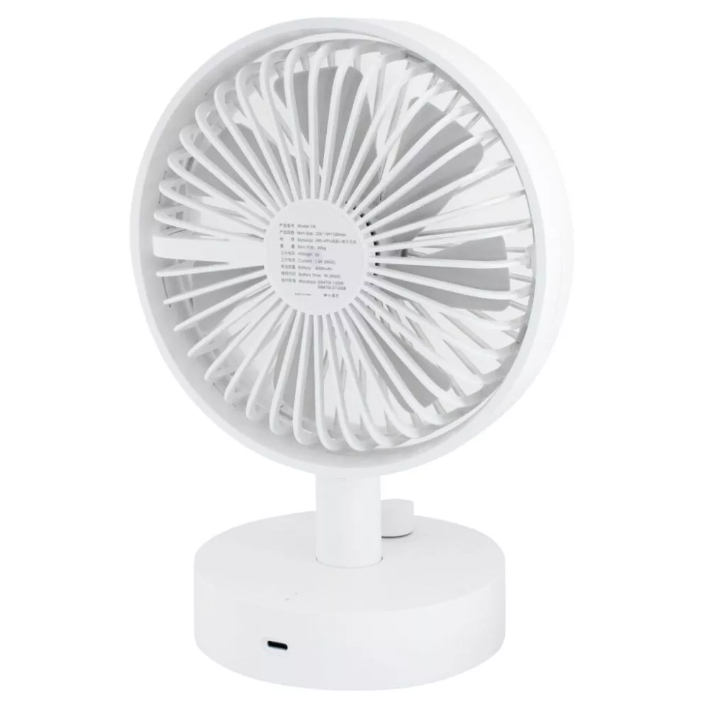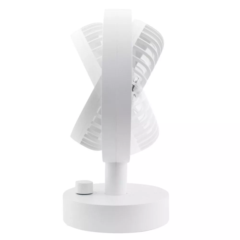 Nicht nur mit horizontaler Drehung ausgestattet, erscheint der Eurotrail Camping-Ventilator mit einer zusätzlichen Drehoption um 70° nach oben und unten. Eine stufenlos einstellbare Lüftergeschwindigkeit erfolgt einfach durch Drehen des Knopfes. Die Oszillationsfunktion kann ein- und ausgeschaltet werden. Abhängig von der Geschwindigkeit, liefert die eingebaute wiederaufladbare 4000-mAh-Polymerbatterie dem Lüfter bis zu 9 Stunden Arbeitszeit. Die matte Beschichtung in edlem Weiss schenkt dem vielseitig einsetzbaren Ventilator ein schickes Aussehen.
